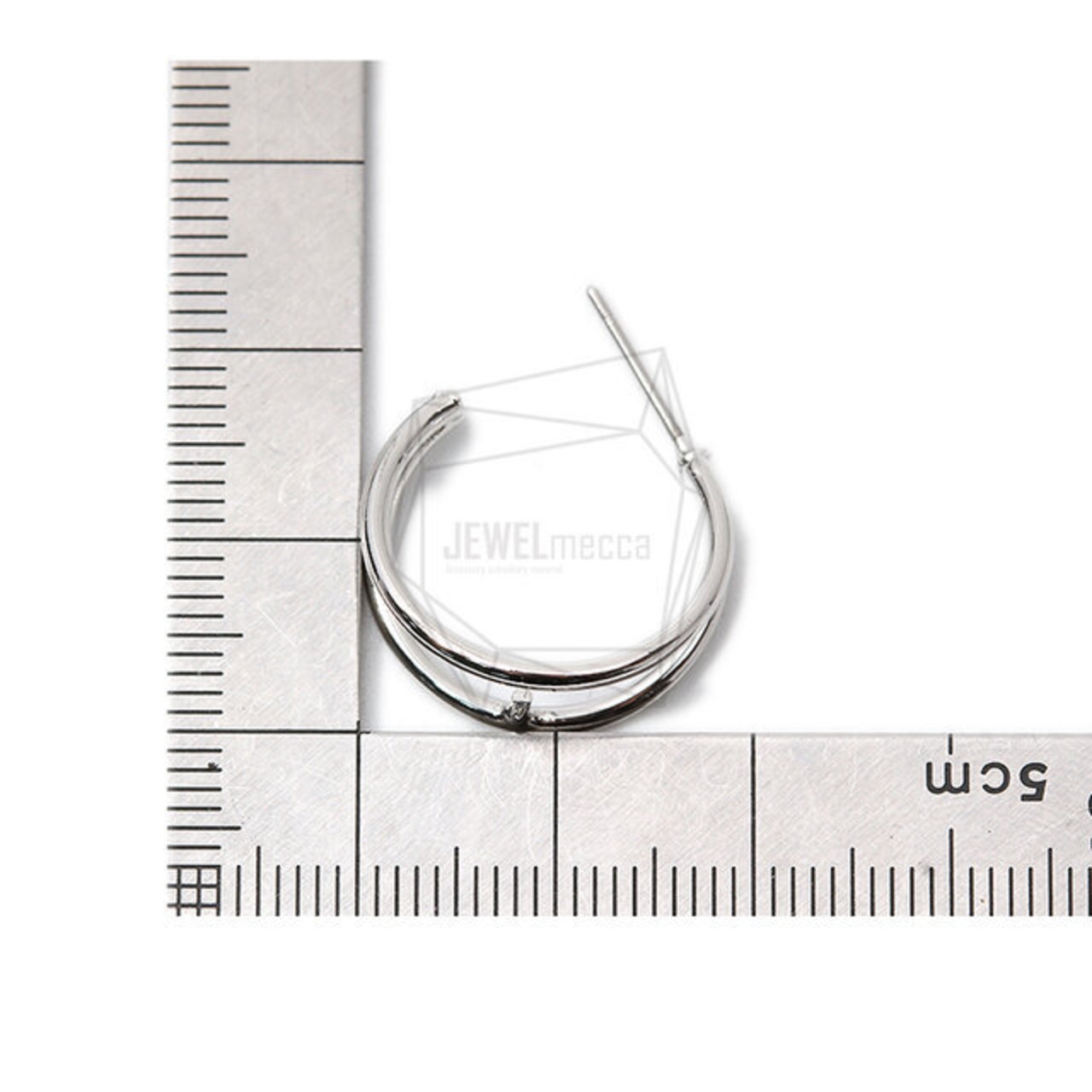 ERG-1257-R/2PCS/Double Round Post Earring/9mm X 18mm/Rhodium Plated Over Brass,Nickel free post