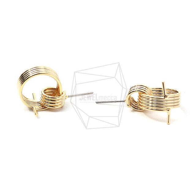 ERG-1258-G/2PCS/Double Linked Rings Post Earring/15mm X 20mm/Gold Plated Over Brass,Titanium post