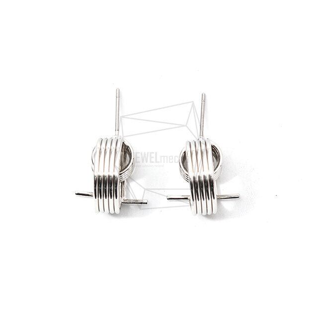 ERG-1258-R/2PCS/Double Linked Rings Post Earring/15mm X 20mm/Rhodium Plated Over Brass,Titanium post