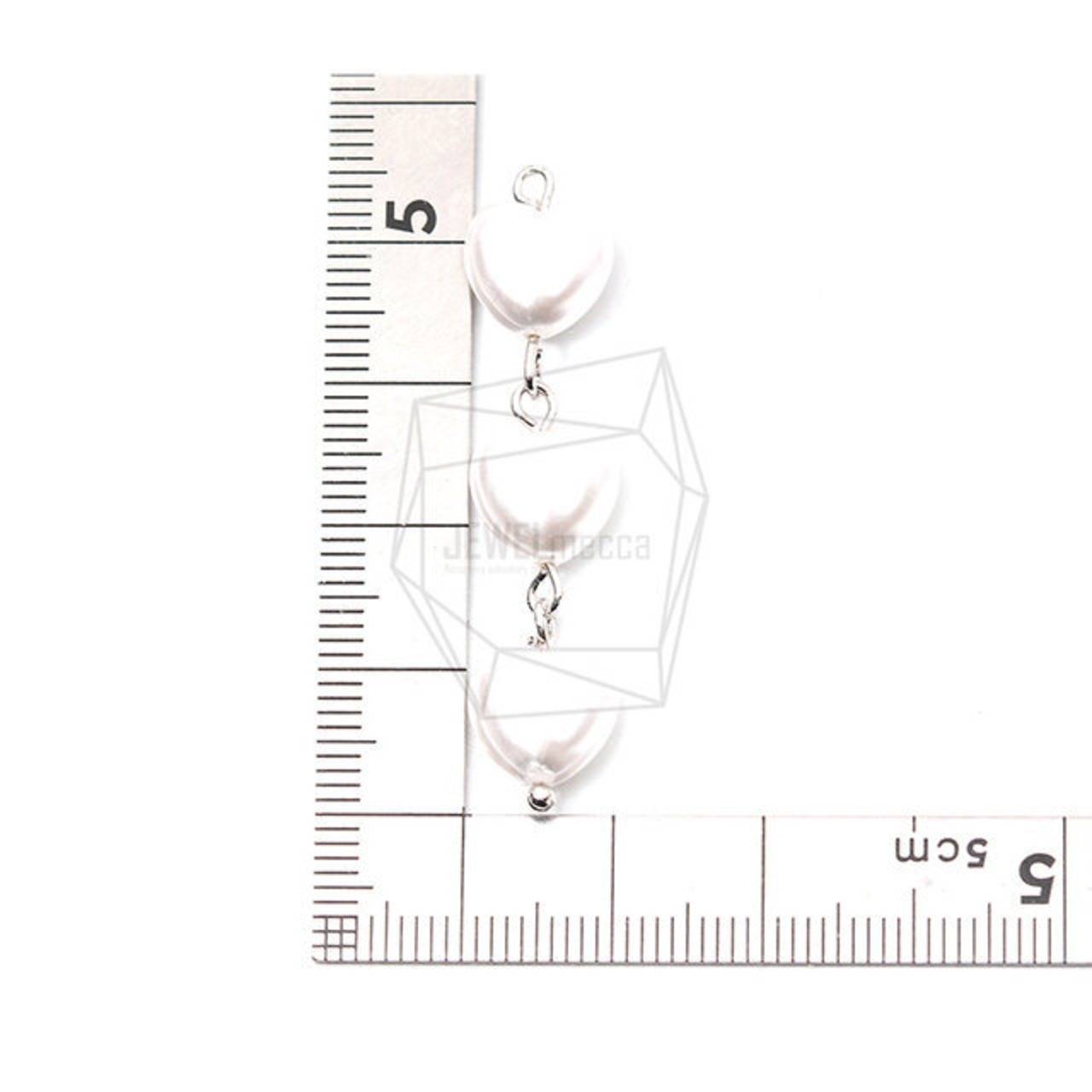 RG-1261-R/2PCS/Triple Linked Heart imitation pearl/12mm X 43mm/Rhodium Plated Over Brass,Imitation pearl