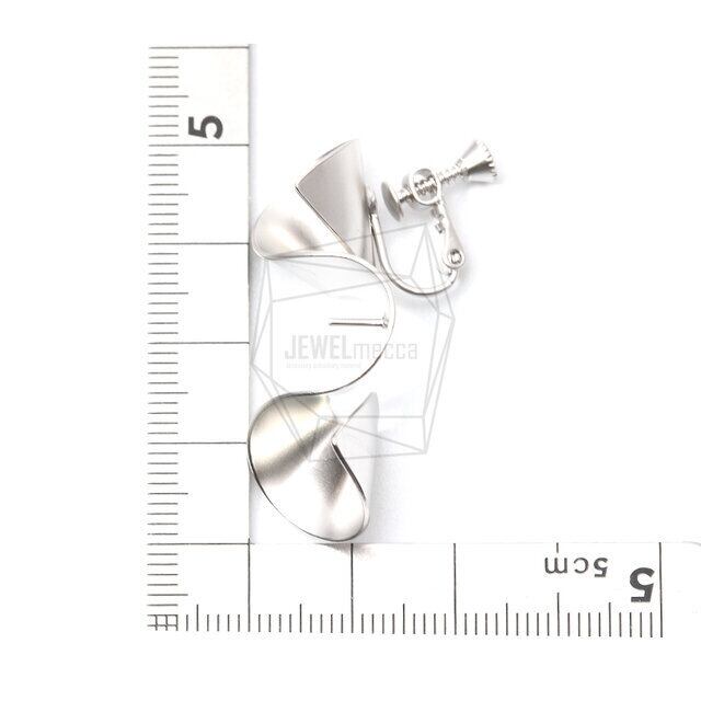 ERG-1278-MR/2PCS/Wide Curly Ribbon Non Pierced Screw Back Clips Earring/14mm x 38mm /Matte Rhodium Plated over Brass