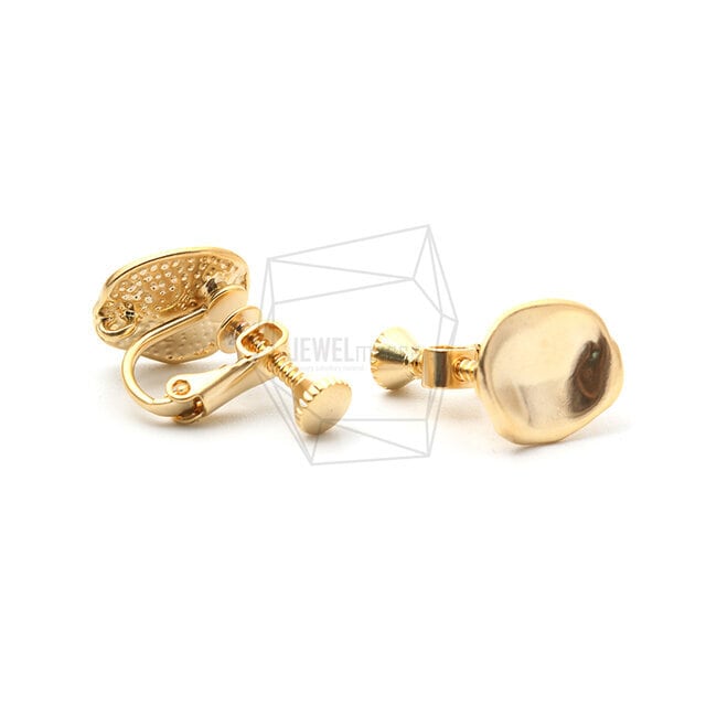 ERG-1270-MG/2PCS/Hammered Round Non Pierced Screw Back Clips Earring/11mm X 13mm/Matte Gold Plated Over Brass