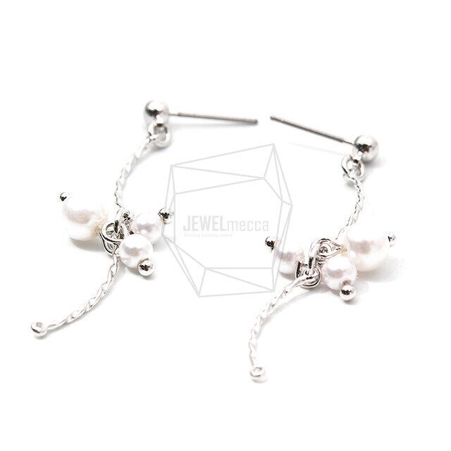 ERG-1273-R/2PCS/Wire Wave pearl Post Earrings/10mm X 45mm/Rhodium Plated Over Brass,Nickel free post
