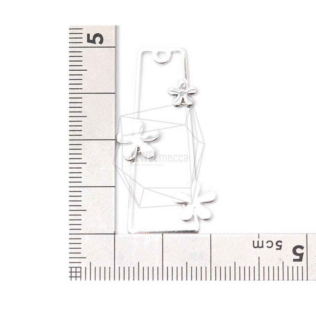 PDT-2250-R/2PCS/Square Frame Flower Pendant/20mm X 40mm/Rhodium Plated Over Brass