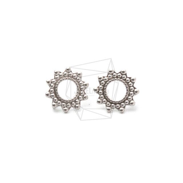 ERG-1282-MR/2PCS/Flower Earring Post/12mm x 12mm/Matte Rhodium Plated over Brass/925 Sterling Silver Post