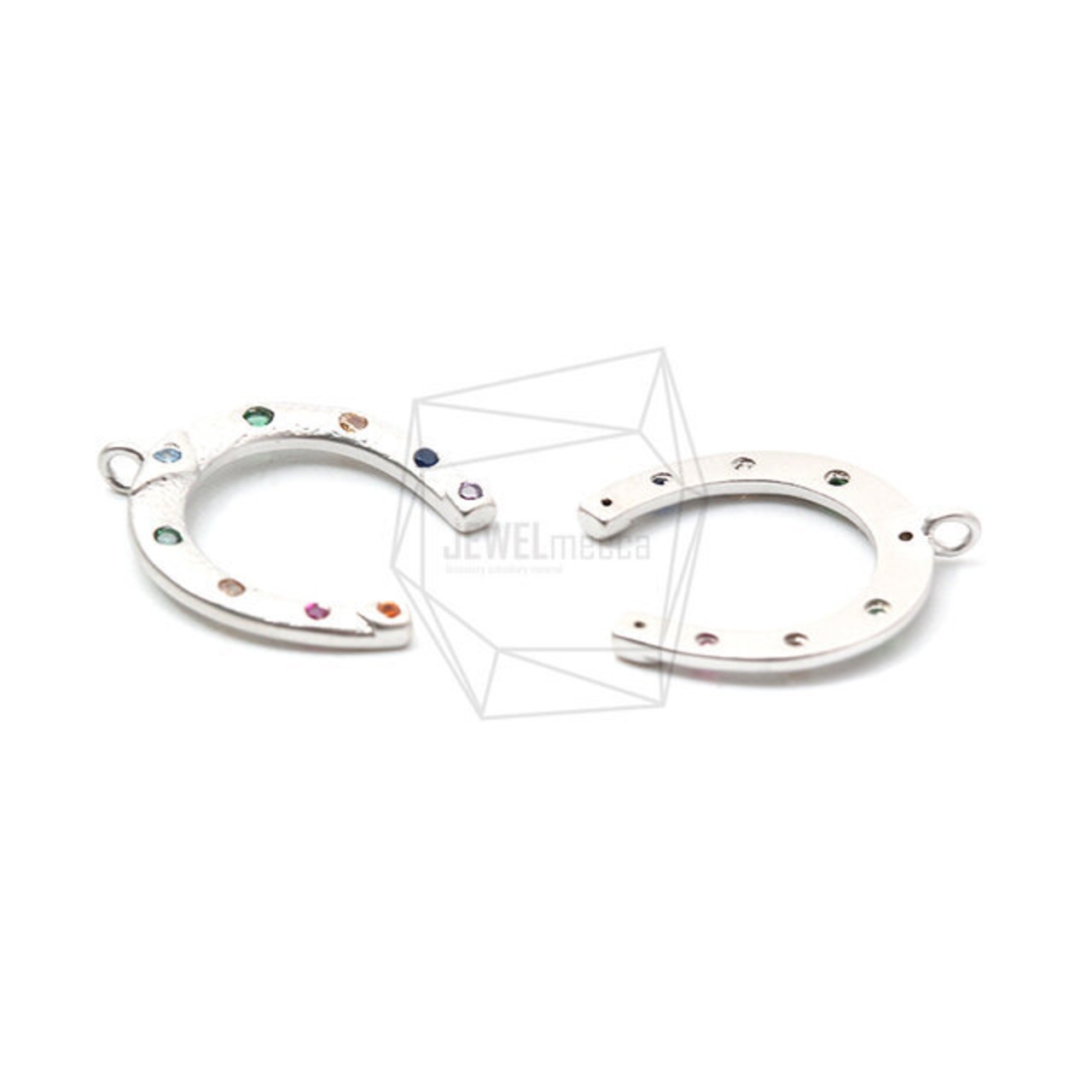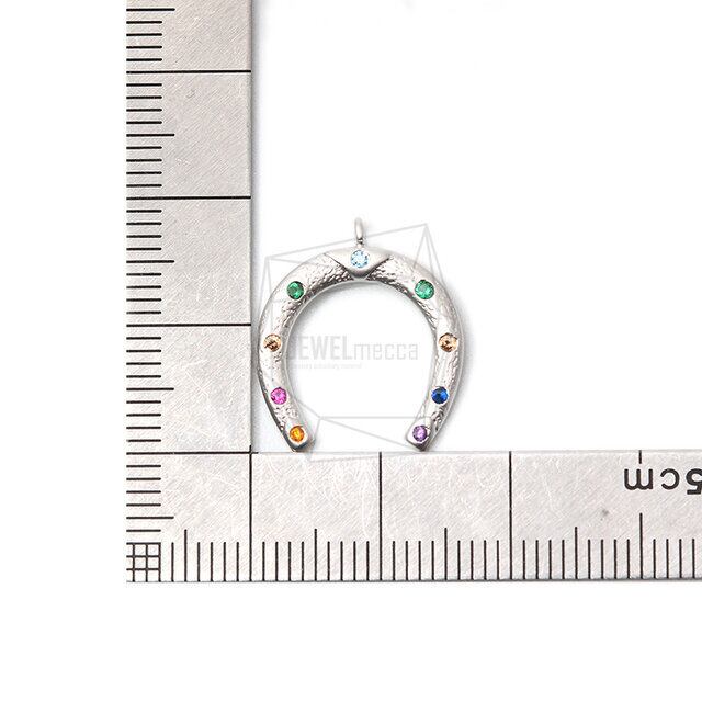 PDT-2255-MR/2Pcs-CZ Setting Horseshoe Pendant/ 12mm X 14mm/matte Rhodium Plated over Brass