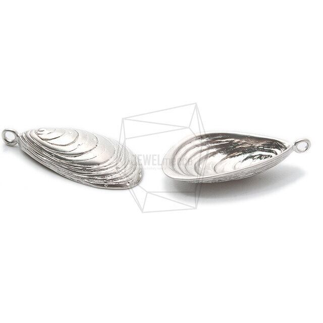 PDT-2259-MR/2Pcs-Shell Charms, Clam Shell, Beach Charms/ 13mmx25mm /Matte Rhodium Plated over Brass