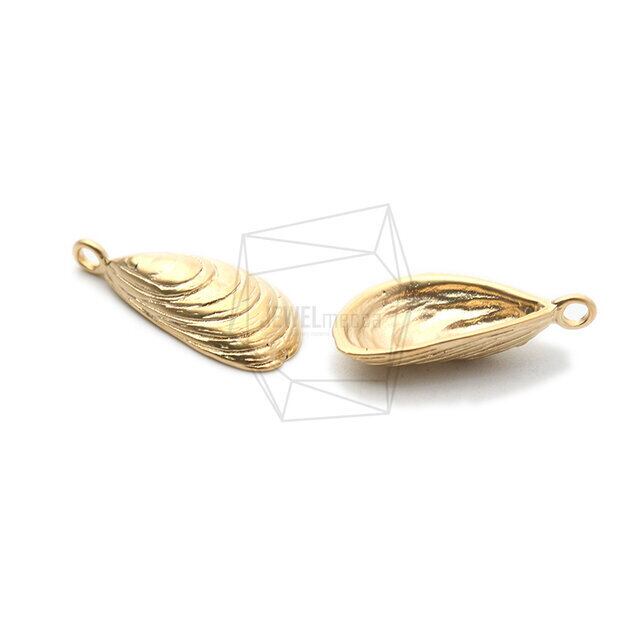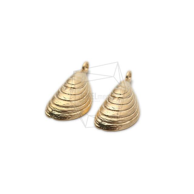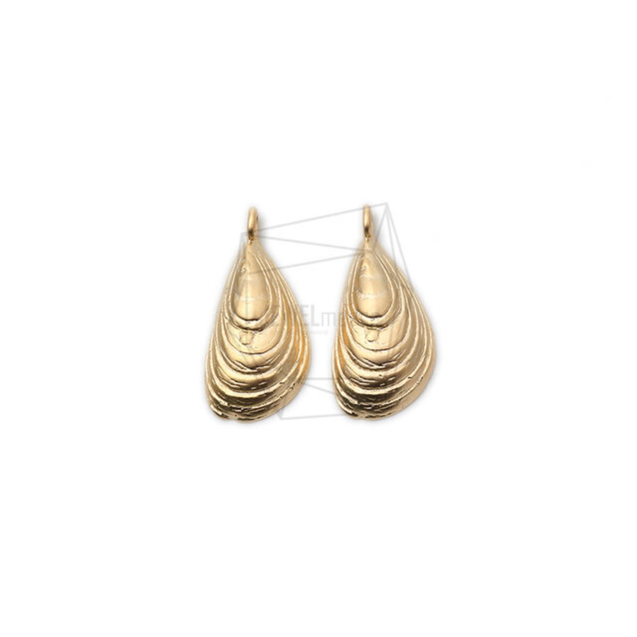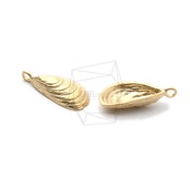 PDT-2261-MG/2Pcs-Shell Charms, Clam Shell, Beach Charms/ 9mmx19mm /Matte Gold Plated over Brass