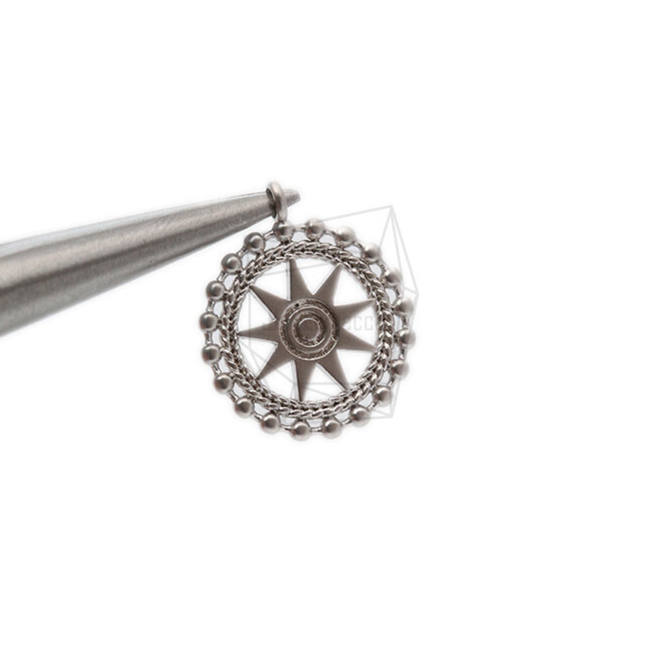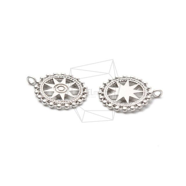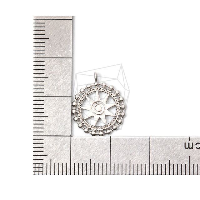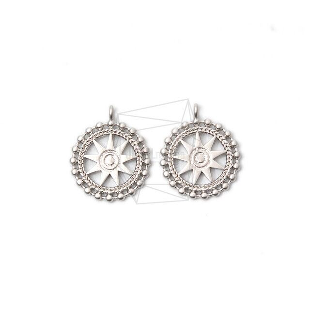 PDT-2262-MR/2PCS/Compass Pendant/14mm X 16mm/Matte Rhodium Plated Over Brass