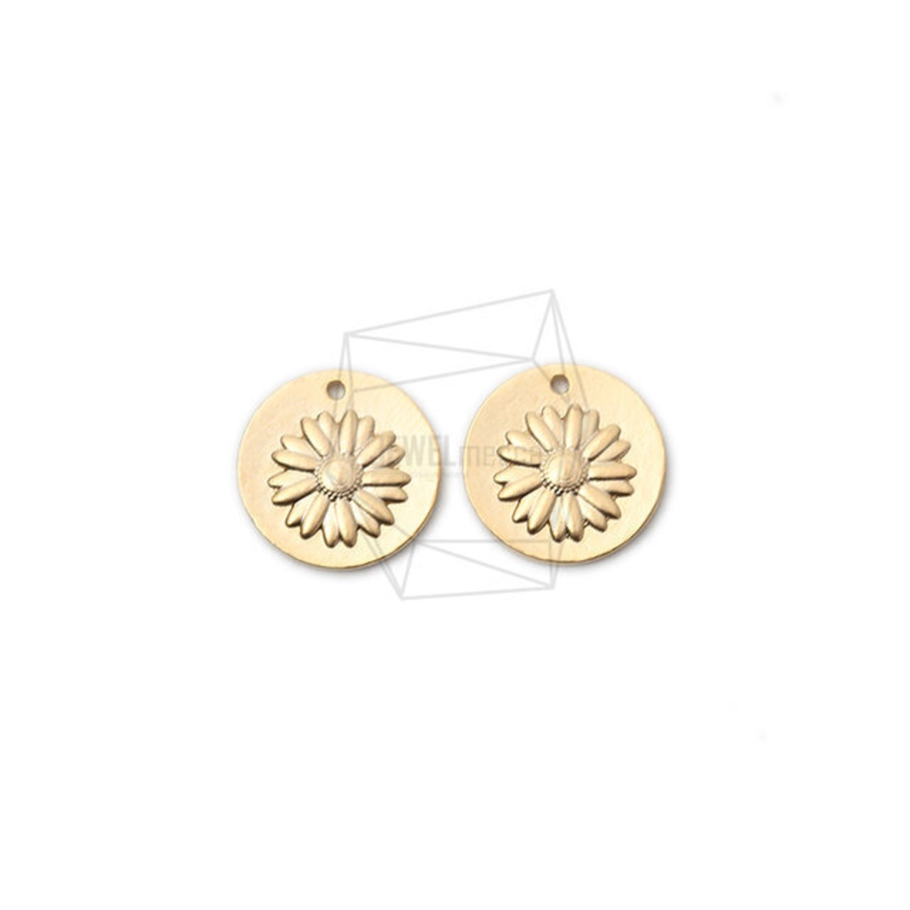 PDT-2263-MG/2Pcs-Flower fossil Pendant/ 12mm x 12mm /Matte Gold Plated over brass