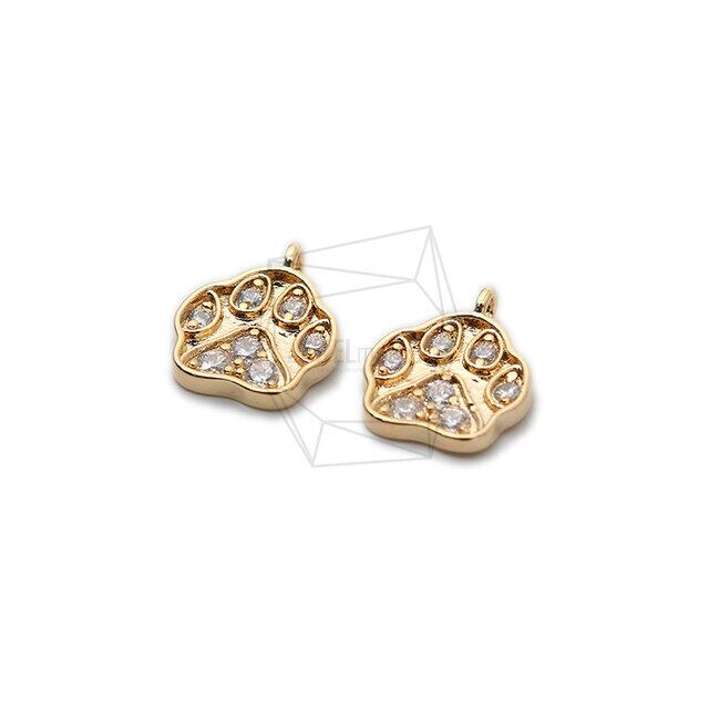 PDT-2264-G/2Pcs-CZ setting Bear paw Pendant/ 10mm x 12mm /Gold Plated over brass