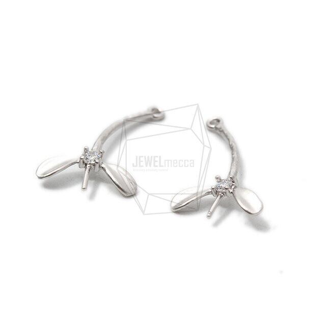 PDT-2252-MR/2pcs/CZ Flower Branch Charm/13mm x 23mm/Matt Rhodium Plated Over Brass
