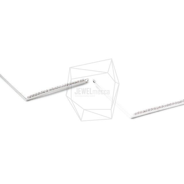 PDT-2234-R/2Pcs-CZ V Pendant,Victory Charm/ 19mmx36mm /Rhodium Plated over brass