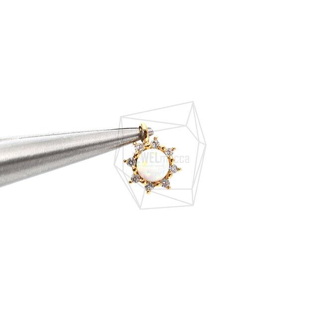 PDT-2235-G/2PCS/Sun opal Pendant/6mm X 9mm/Gold Plated Over Brass,CZ