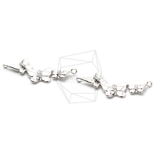 NT-189-R/2Pcs-Tiny Butterfly Charm/12mmx24mm/Rhodium Plated Over Brass,CZ