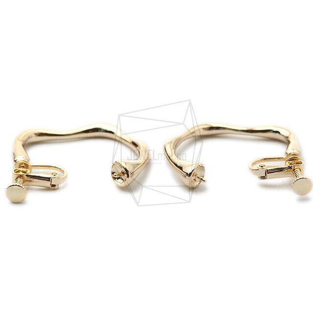 ERG-1287-G/2PCS/Bumpy Line Non Pierced Screw Back Clips Earring/30mm X 32mm/Gold Plated Over Brass
