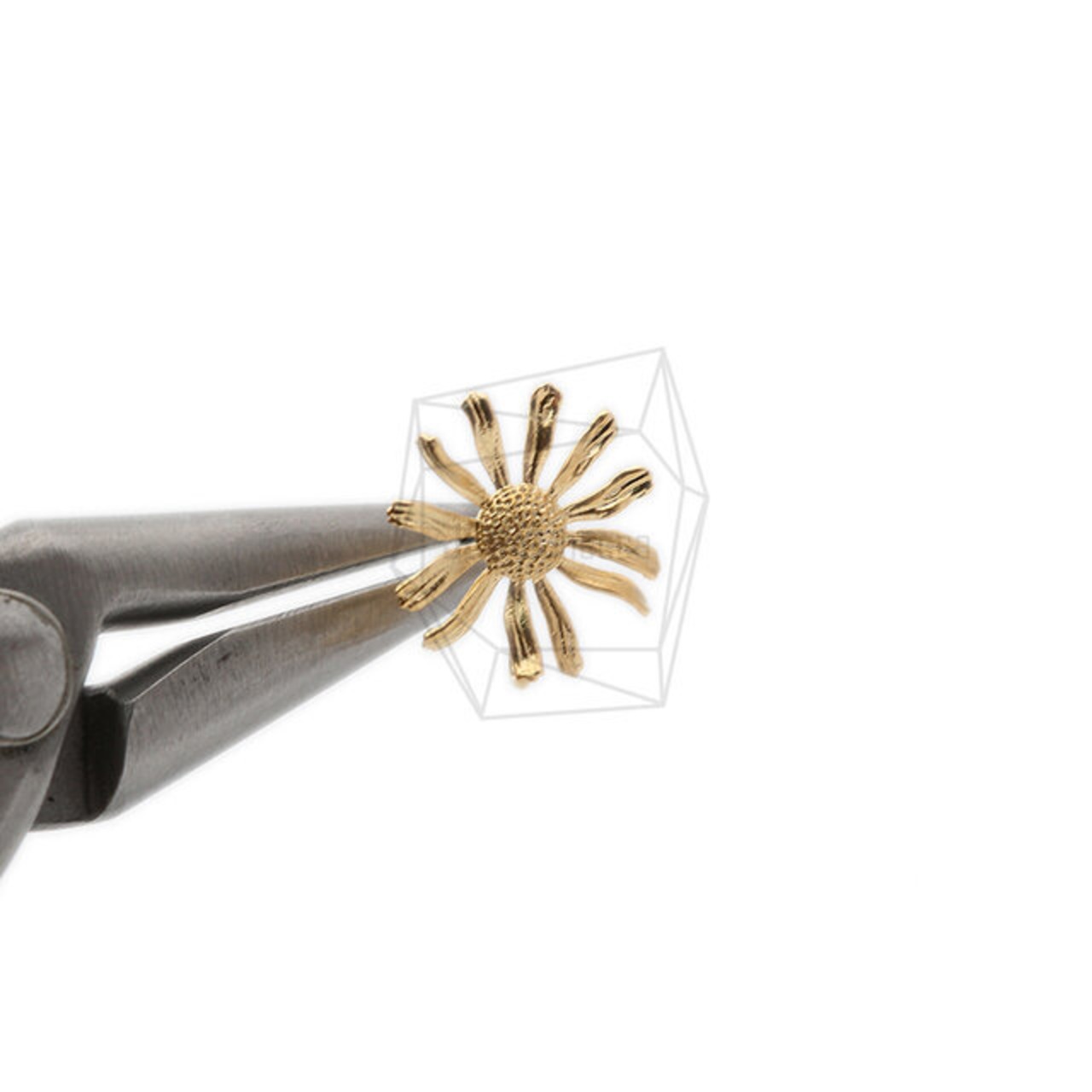 ERG-1288-MG/2PCS/Sunflower Ear Post/12mm x 12mm/Matte Gold Plated over Brass,silver post