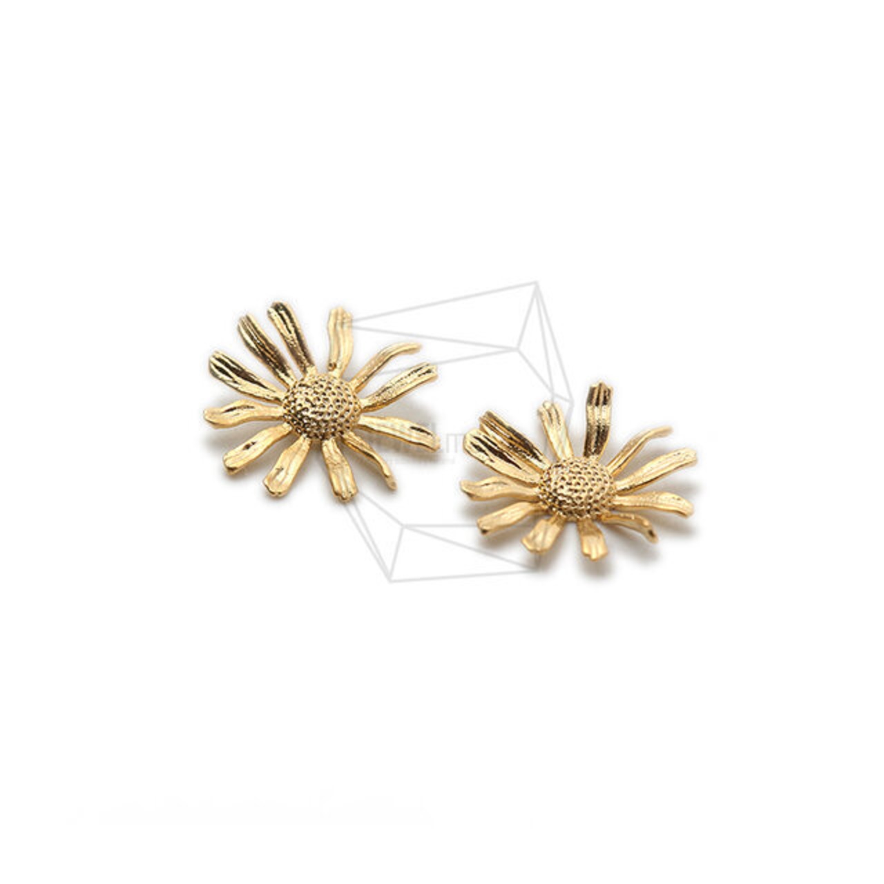 PDT-2271-MG/2PCS/Sunflower Pendant/12mm X 12mm/Matte Gold Plated Over Brass
