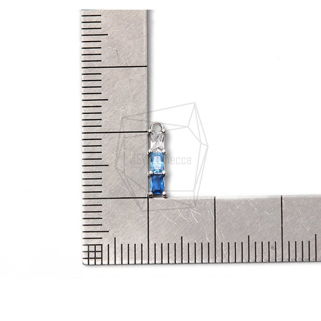 PDT-2272-R/2PCS/Cubic bar Pendant/3mm X 6mm/Rhodium Plated Over Brass , Cubic Zirconia