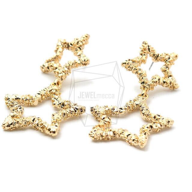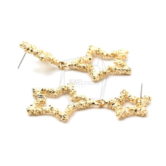 ERG-1292-G/2PCS/Linked star and star Post Earring/33mm X 60mm/Gold Plated Over tin,Stainless Post