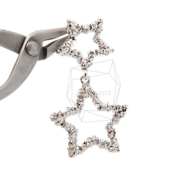 ERG-1292-R/2PCS/Linked star and star Post Earring/33mm X 60mm/Rhodium Plated Over tin,Stainless Post