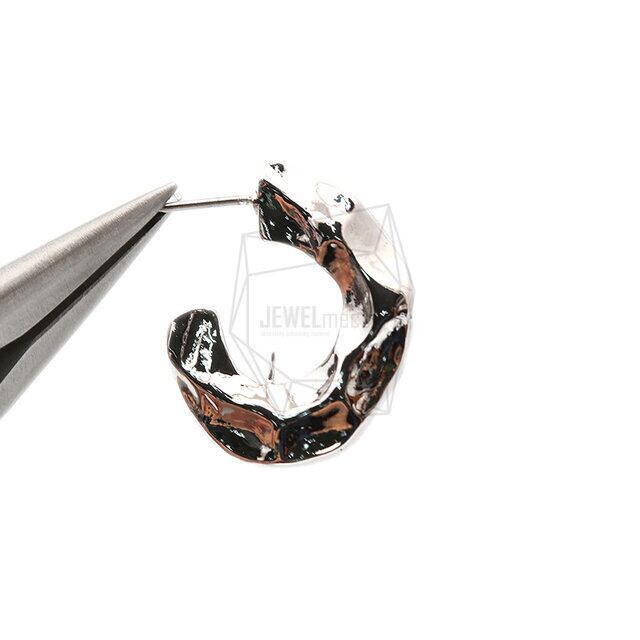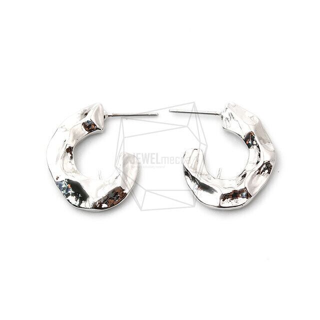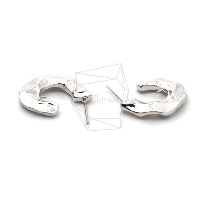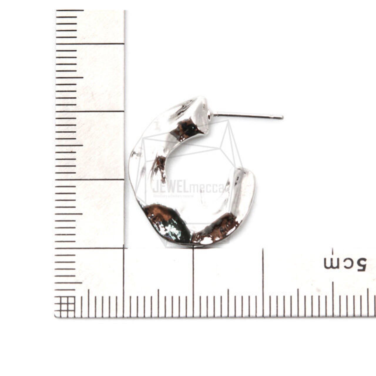 ERG-1295-R/2PCS/Hammered L shape post Earring/18mm X 22mm/Rhodium Plated Over Brass,Stainless Post