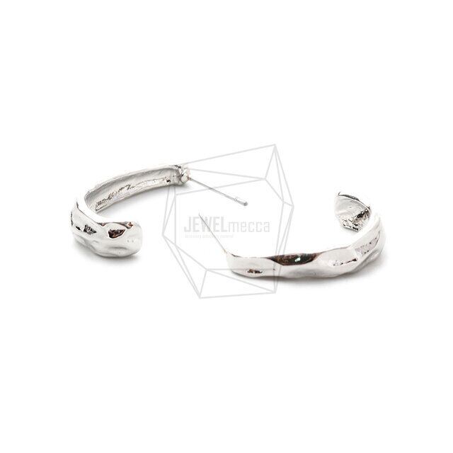 ERG-1296-R/2PCS/Hammered L shape post Earring/13mm X 22mm/Rhodium Plated Over Brass,Stainless Post