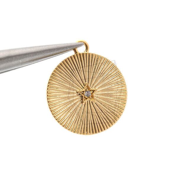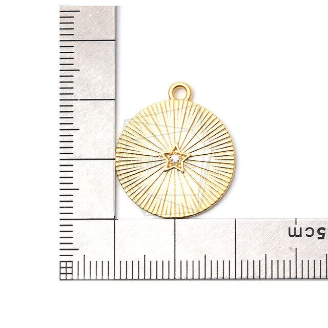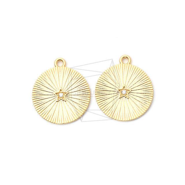 PDT-2280-MG/2pcs/Comb-patterned Round Pendant/20mm x 22mm/Matte Gold Plated Over Brass,CZ