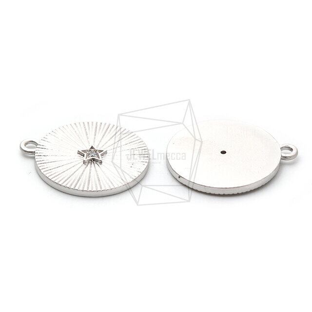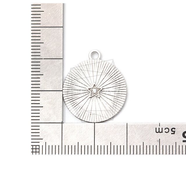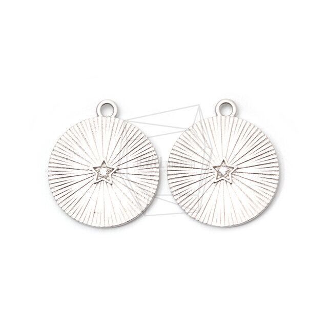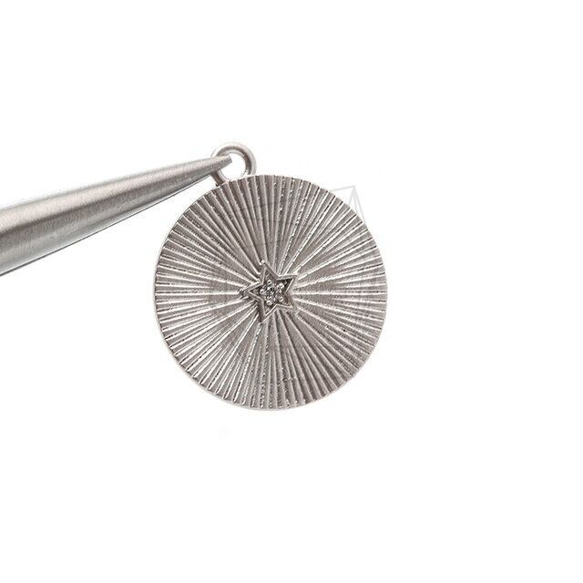 PDT-2280-MR/2pcs/Comb-patterned Round Pendant/20mm x 22mm/Matte Rhodium Plated Over Brass,CZ