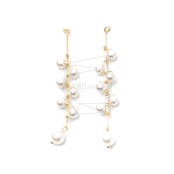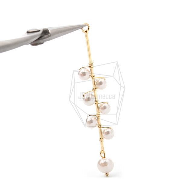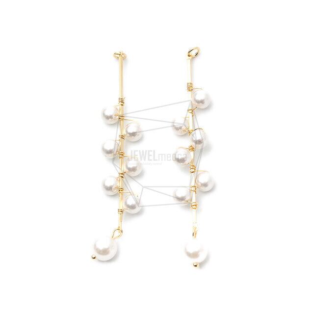 ERG-1298-G/2PCS/Pearl Tassel Earring Charm/13mm X 70mm/Gold Plated Over Brass,Imitation Pearl