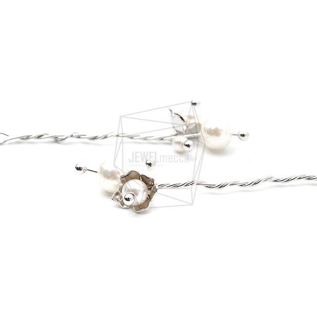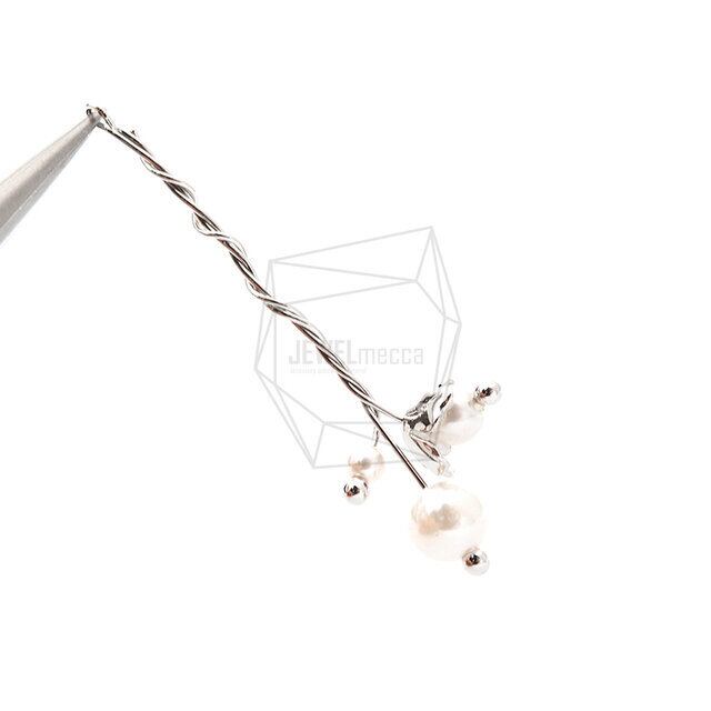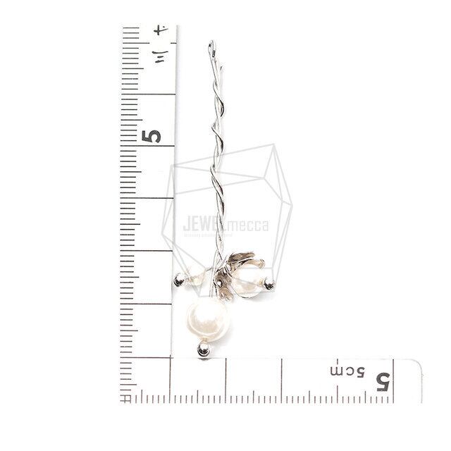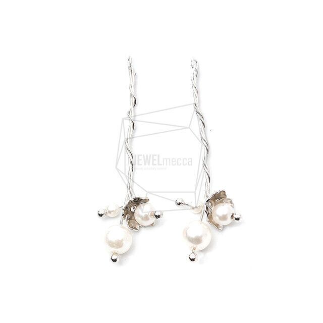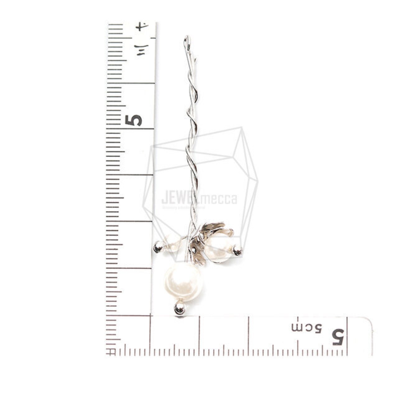 ERG-1299-R/2PCS/Pearl bar Earing Charm/19mm X60mm/Rhodium Plated Over Brass,Imitation pearl