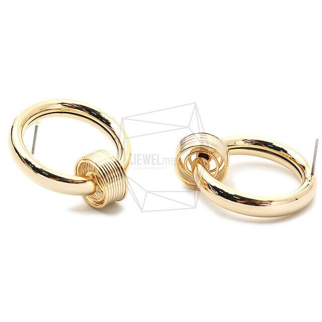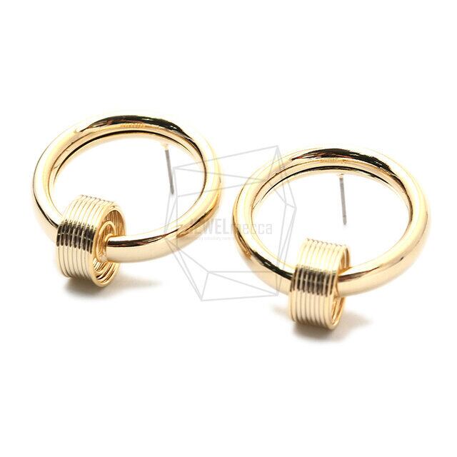 ERG-1300-G/2PCS/spring round Post Earring/30mm X 34mm/Gold Plated Over Brass,Stainless Post