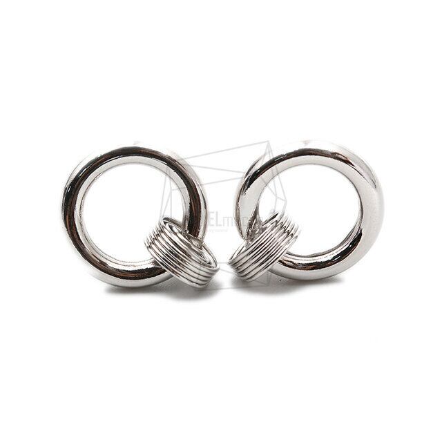 ERG-1301-R/2PCS/spring round Post Earring/20mm X 23mm/Rhodium Plated Over Brass,Stainless Post
