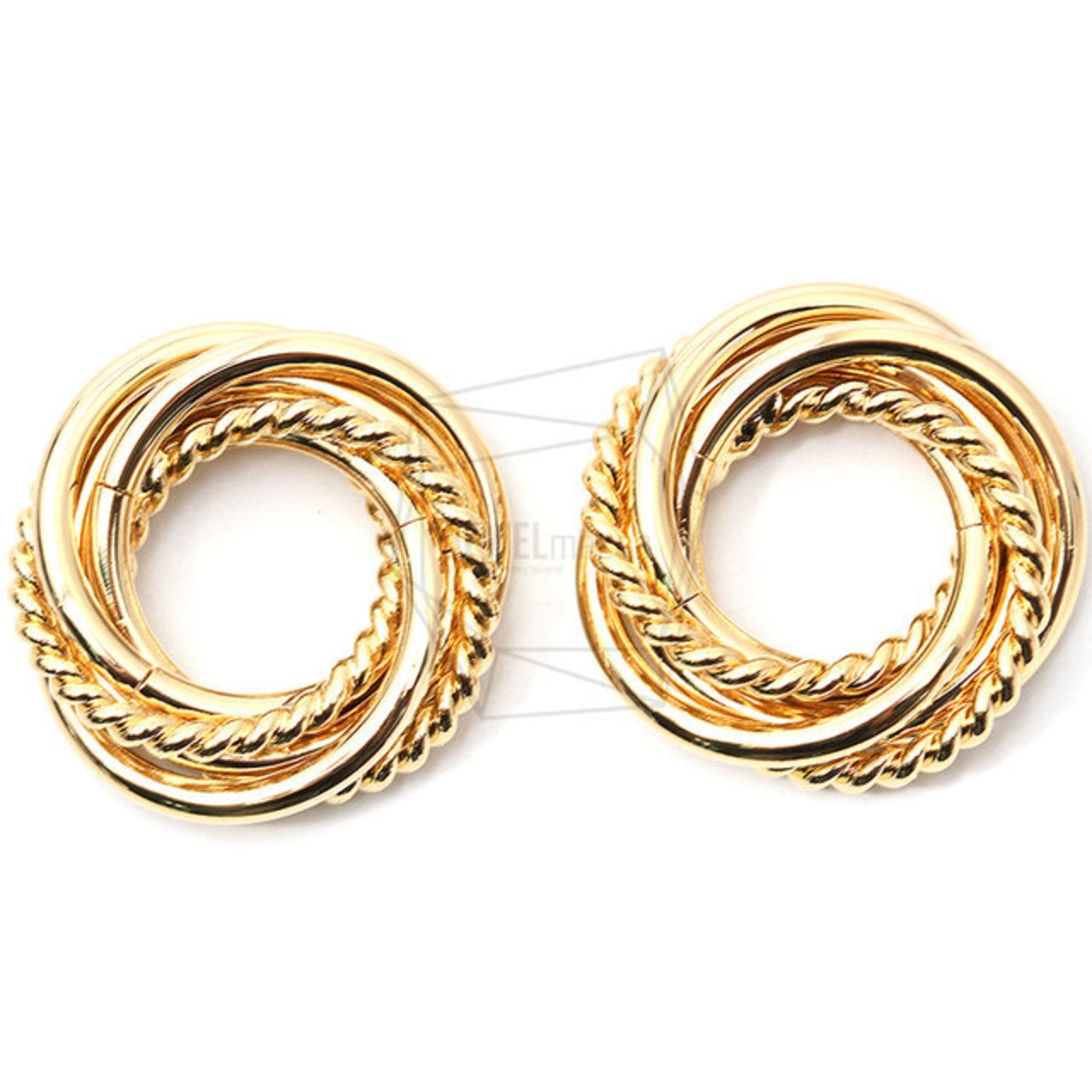 PDT-2287-G/2PCS/Five Round Twisted Pendant/35mm X 35mm/Gold Plated Over Brass
