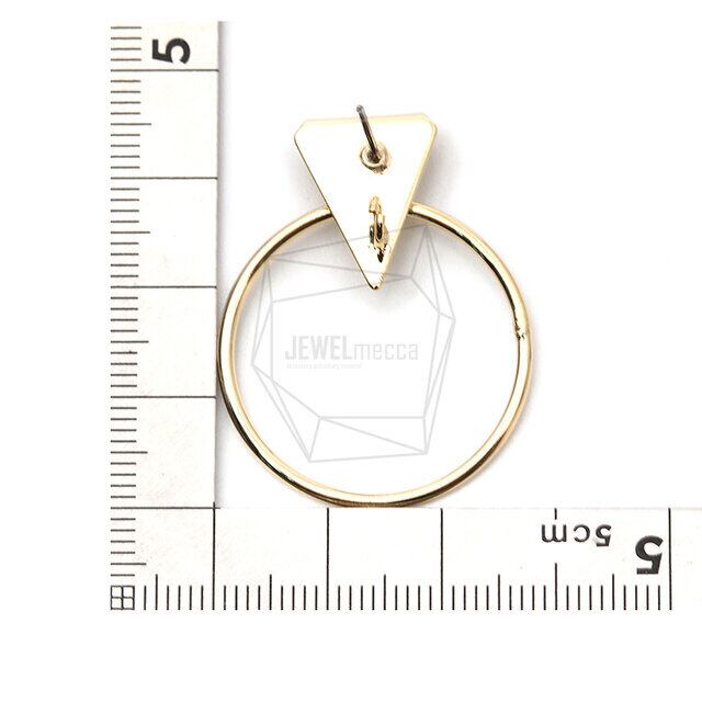 ERG-1307-G/2PCS/Linked Triangle and circle Post Earring/28mm X 35mm/Gold Plated Over Brass,Stainless Post