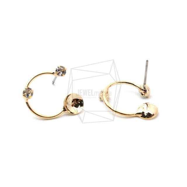 ERG-1312-G/2PCS/CZ Setting Snowflake Earrings Post/8mm X 9mm/Matte Gold Plated Over Brass,Nickel free post