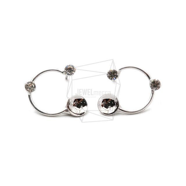 ERG-1312-R/2PCS/CZ Setting Round Earrings Post/ 14mm X 18mm/Rhodium Plated Over Brass,Nickel free post