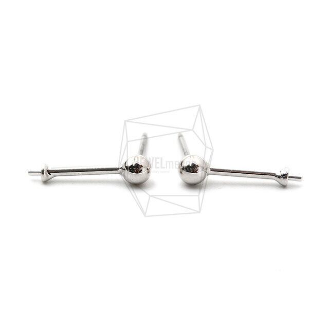 ERG-1313-R/4PCS/Ball Bar Earring Post/ 4mm x 16mm/Rhodium Plated over Brass,Nickel free post