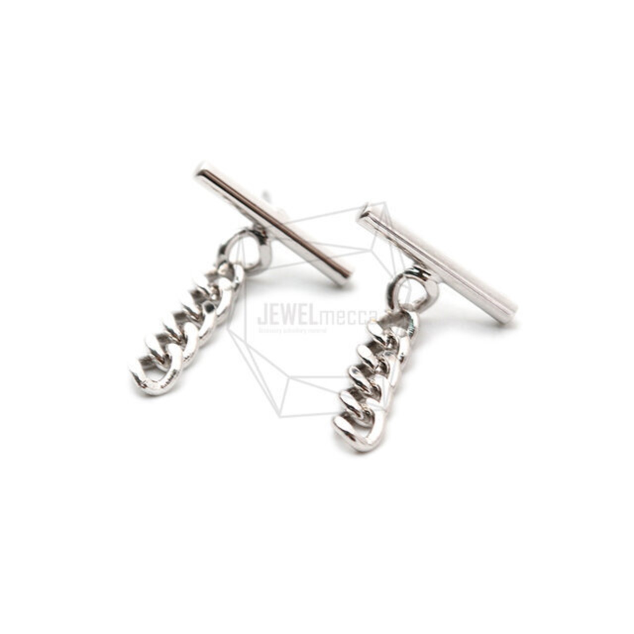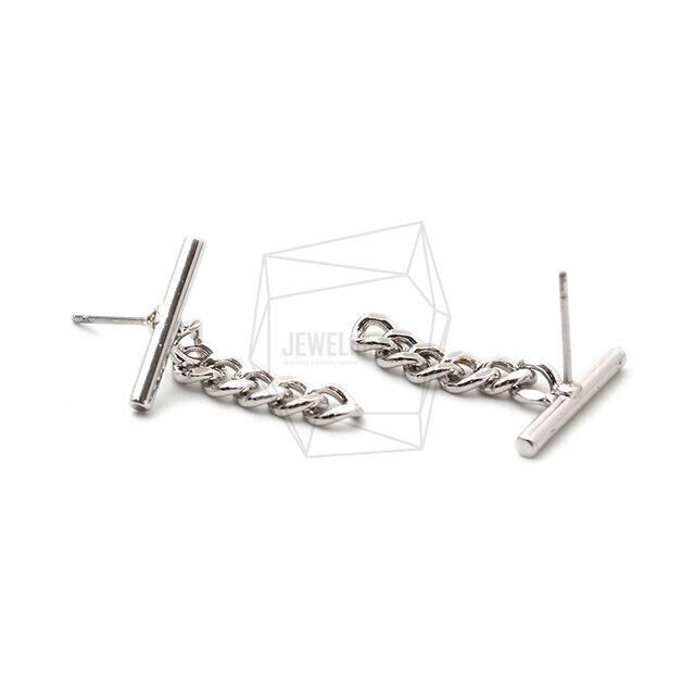 ERG-1314-R/2PCS/Ball Chain Earring Post/ 13mm x 15mm/Rhodium Plated over Brass,Nickel free post