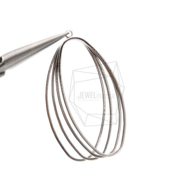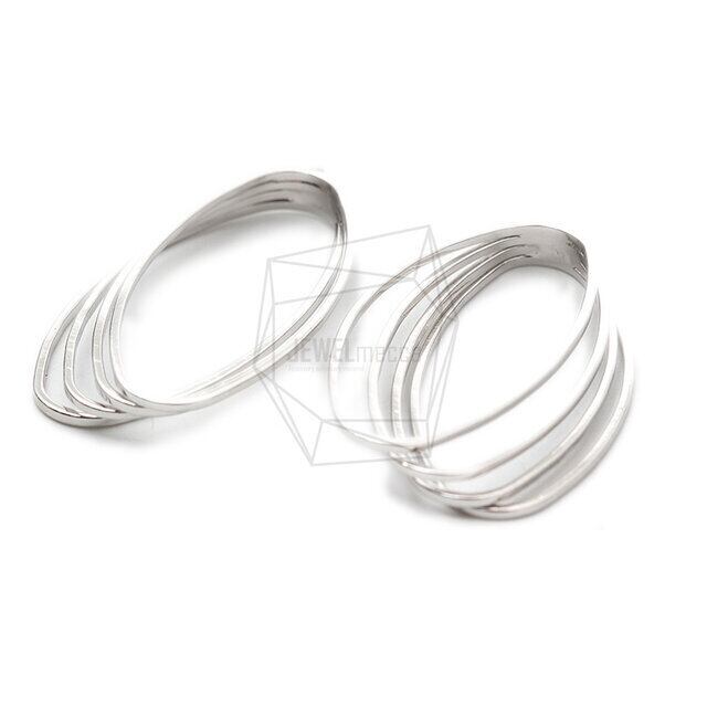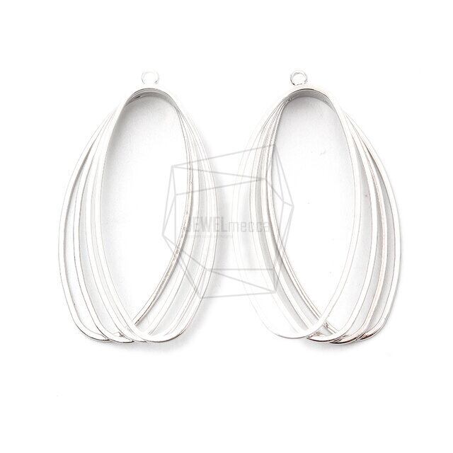 PDT-2298-R/2PCS/Quad Stack Oval Pendant/25mm x 43mm/Rhodium Plated over Brass