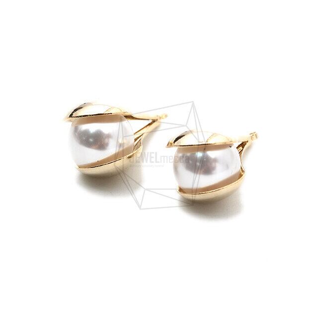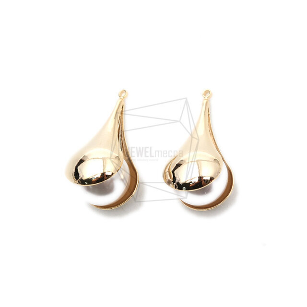PDT-2299-G/2Pcs-Shell Charms, Clam Shell, Beach Charms/ 14mmx27mm /Gold Plated over Brass,Imitation pearl