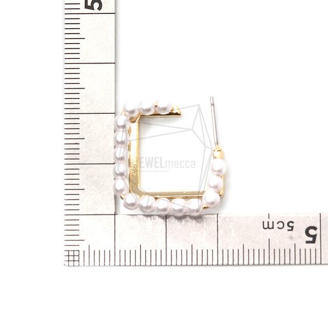 ERG-1315-G/2PCS/Pearl L shape Post Earring /23mm X 23mm/Gold Plated Over Brass,Stainless Post