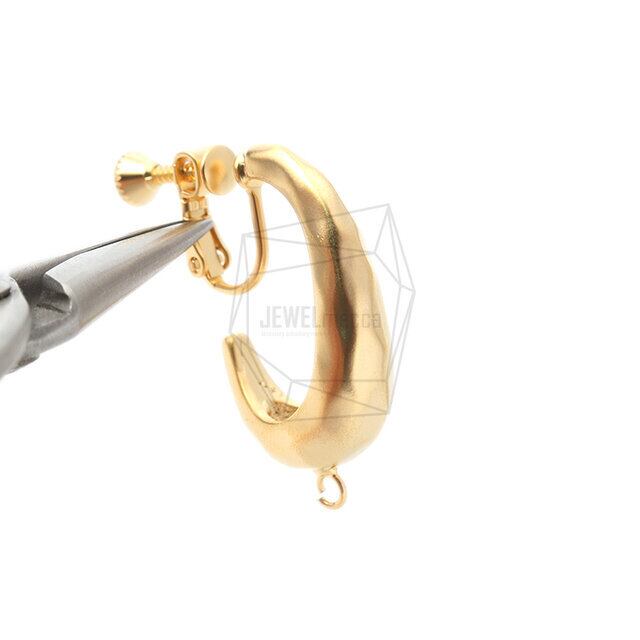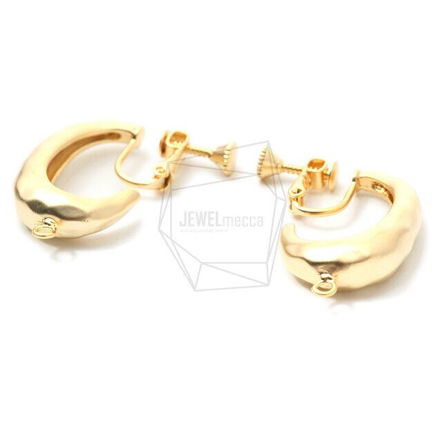 ERG-1319-MG/2PCS/Hammered L Shape Non Pierced Screw Back Clips Earring /19mm x 30mm/Matte Gold Plated Over Brass