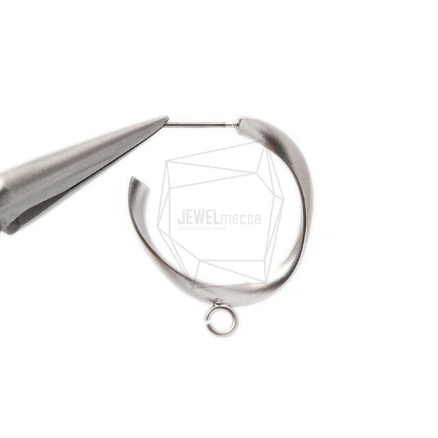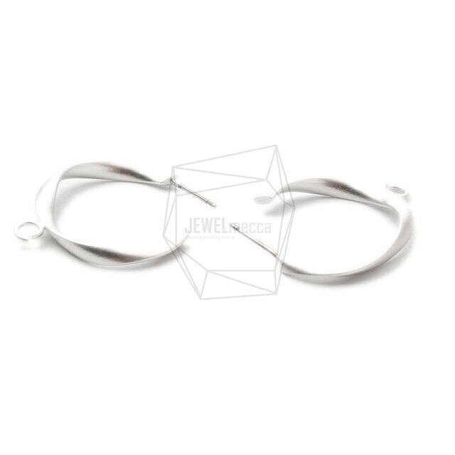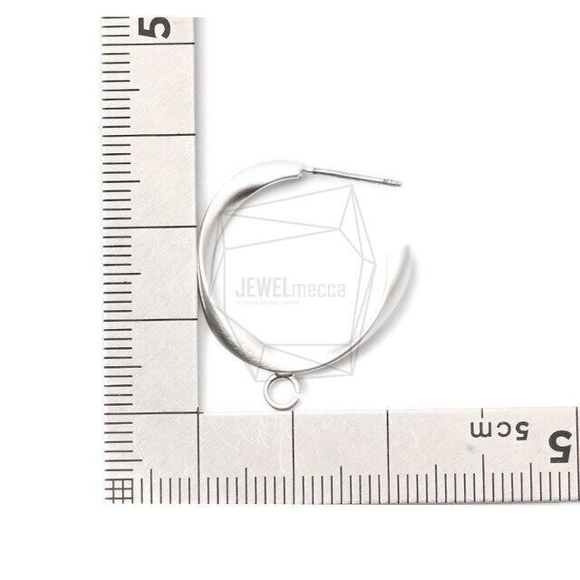 ERG-1321-MR/2PCS/Curved Round Post Earrings/23mm X 27mm/Matte Rhodium Plated Over Brass/Stainless Post