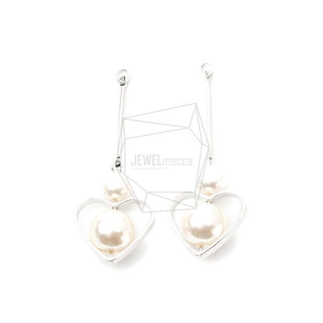 ERG-1322-R/2PCS/Heart and Pearl Earring Charm/20mm x 55mm/Rhodium Plated Over Brass,Imitation pearl