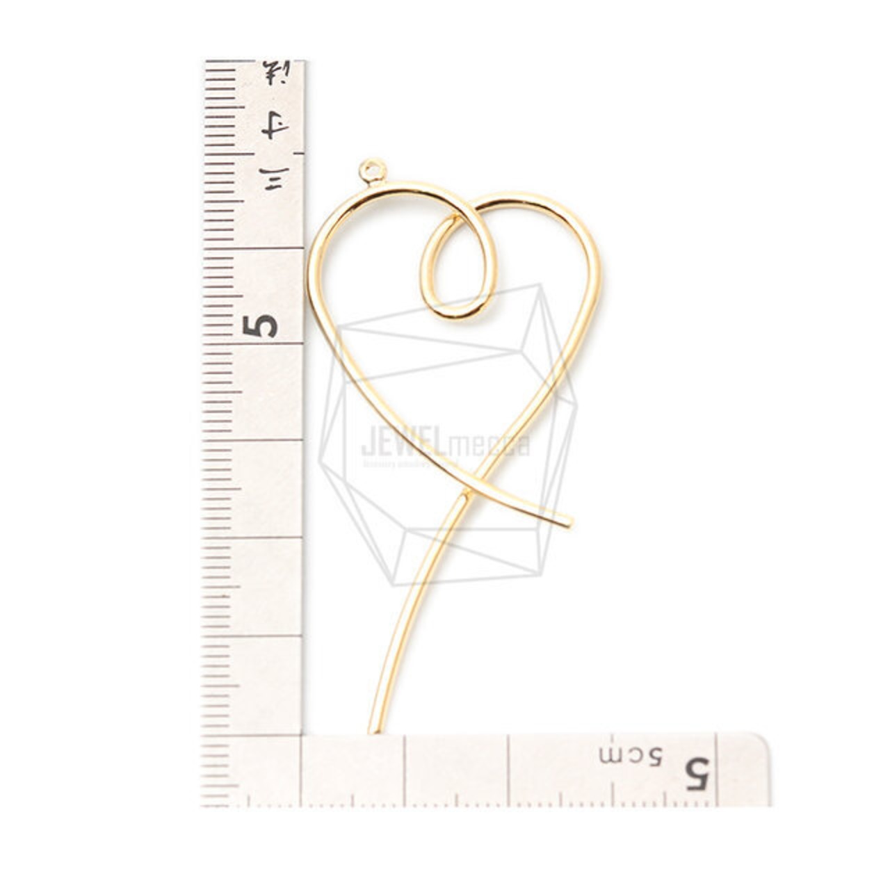 PDT-2313-G/2pcs/Wire Heart Pendant/28mm x 60mm/Gold Plated Over Brass