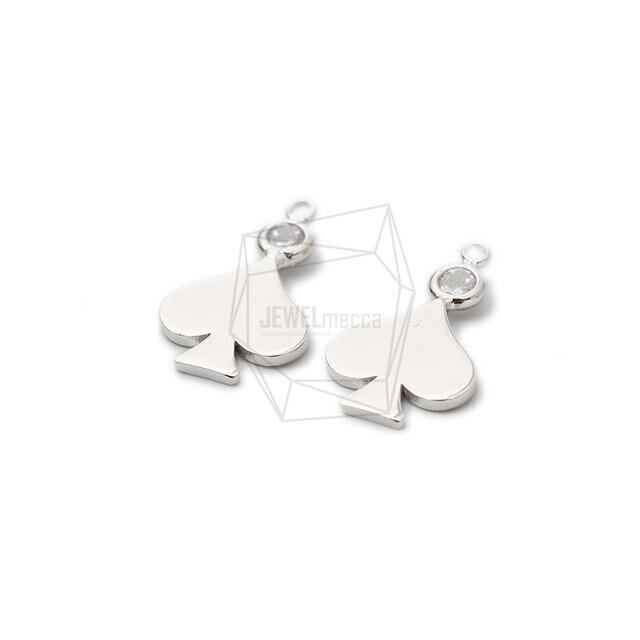 PDT-2315-R/2Pcs-spade shape Pendant / 10mmx17mm /Rhodium Plated over brass,cz