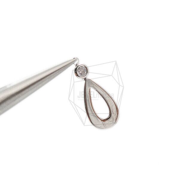 PDT-2316-R/2Pcs-Teardrop shape Pendant / 8mmx19mm /Rhodium Plated over brass,cz