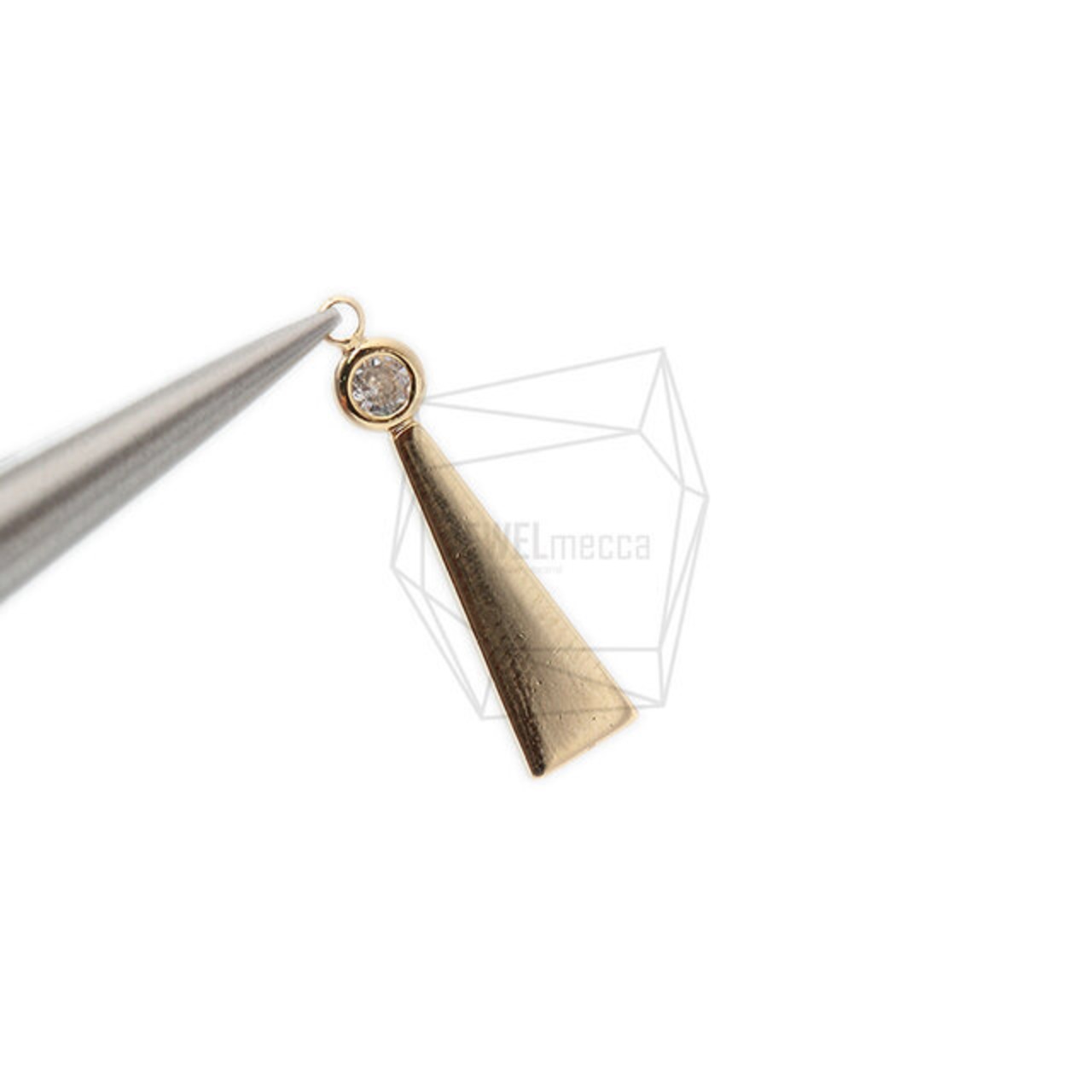 PDT-2317-G/2Pcs-Triangle shape Pendant / 5mmx21mm /Gold Plated over brass,cz