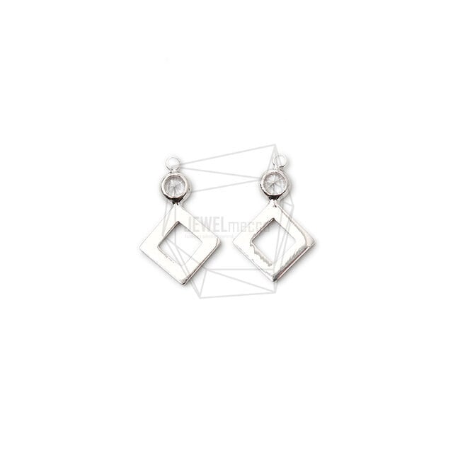PDT-2319-R/2Pcs-Square Pendant / 10mmx16mm /Rhodium Plated over brass,cz